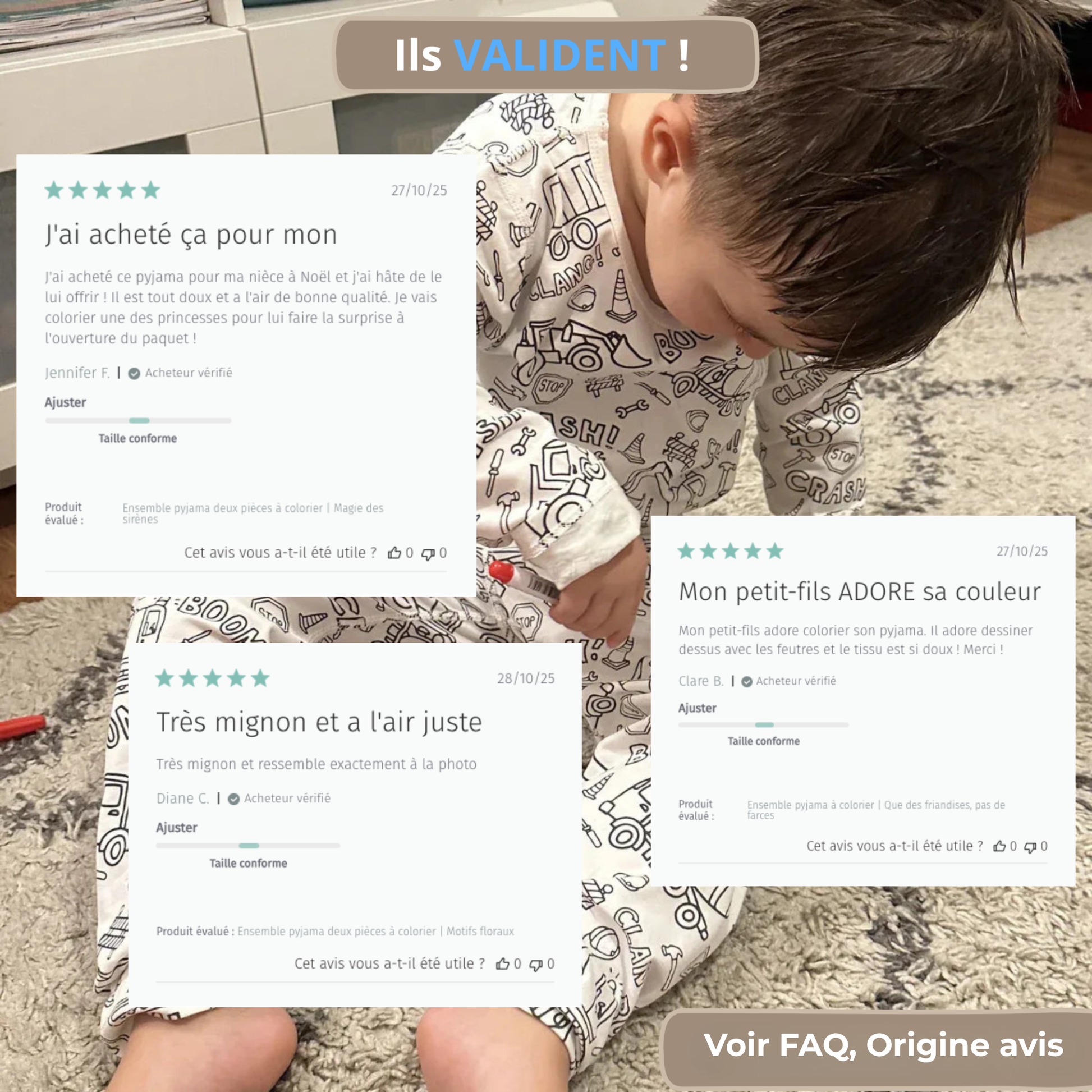 Le pyjama transforme le rituel du soir en un moment créatif et relaxant, offrant aux enfants une alternative ludique et engageante aux tablettes ou télévisions avant le coucher.